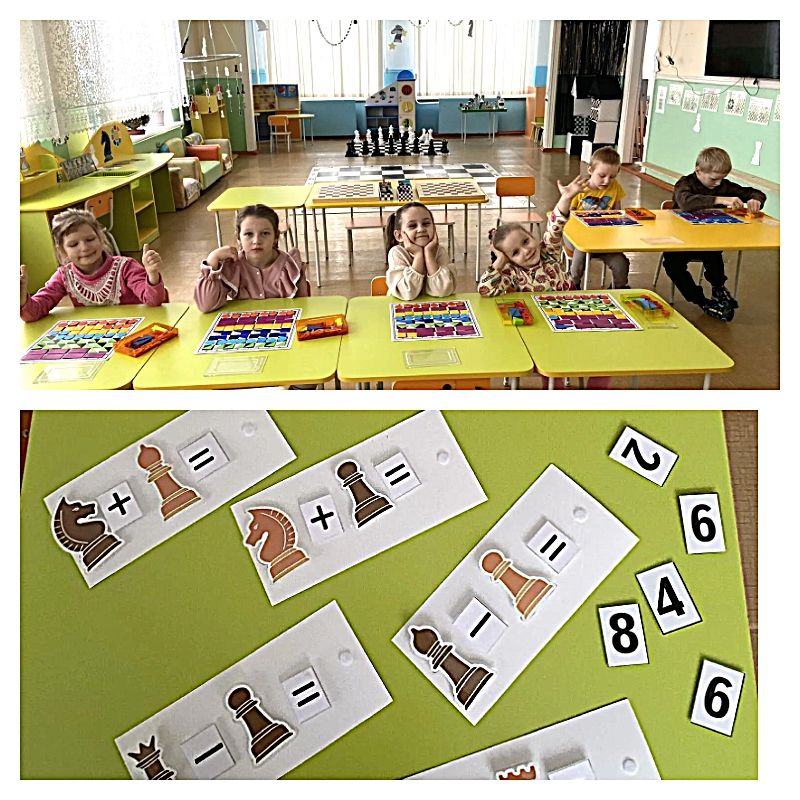 Предметом исследования являются математические задачи и примеры, связанные с шахматной доской и шахматными фигурами. Дошкольники уже знают, что такое ценность шахматных фигур и учатся решать примеры с помощью слонов, коней, ладей и ферзей. На занятиях используются математические вееры, шаблоны примеров с цифрами, фигурами, знаками «плюс», «минус», «равно», математические наборы с геометрическими фигурами и цифрами. Кроме этого мы играем в игры «Четвертый лишний», «Шахматная стратегия», «Найди место», «Белые и черные поля», «Сравни диагональ, вертикаль, горизонталь», «Лото», «Найди домик», «Сделай ход». Всё это вызывает у детей интерес и желание работать на занятиях. Благодаря математике, ребятам много чего еще предстоит узнать о шахматах и научиться играть.
