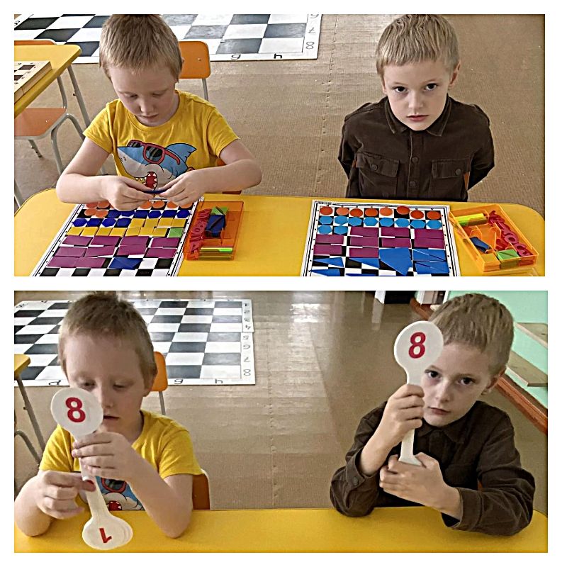 Несомненно, между математикой и шахматами есть взаимосвязь. На протяжении двух месяцев объектом исследования дошкольников является Шахматная доска, глядя на которую можно понять, что в первую очередь, это геометрия, симметрия и координаты. Ну, это всё термины для взрослых. Дети же узнают, горизонтальные, вертикальные, диагональные линии, делят шахматную доску на геометрические фигуры, находят заданные адреса (координаты) при пересечении цифр и букв, учатся ориентироваться на доске, считать, чередовать клетки, знакомятся с понятиями четные и нечетные цифры и числа.